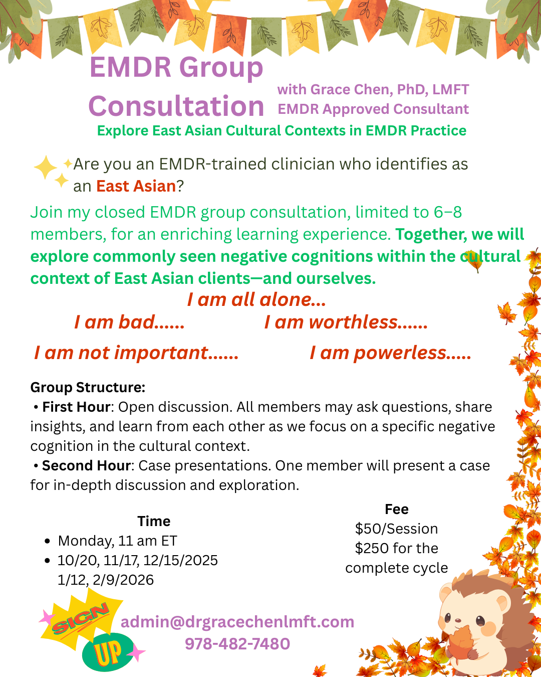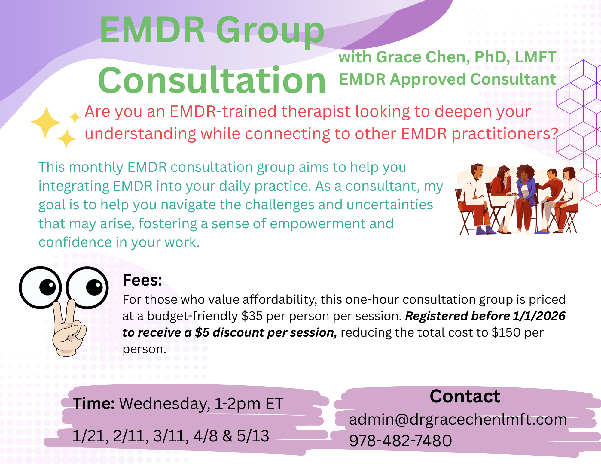 This monthly EMDR consultation group aims to help you integrate EMDR into your daily practice. As a consultant, my goal is to help you navigate the challenges and uncertainties that may arise, fostering a sense of empowerment and confidence in your work.